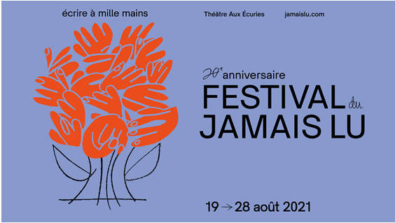 La 20e édition du Festival du Jamais lu sera présentée du 19 au 28 août 2021, sous le thème « écrire à mille mains ». La cellule artistique sera composée de Fanny Brossard-Charbonneau, Marcelle Dubois, Étienne Lou, Bibish Marie Louise Mumbu et Anne-Marie Olivier. En attendant le dévoilement de la programmation le 2 août prochain, l’équipe du Festival dévoile le visuel, la ligne éditoriale et les auteurs et autrices qui prendront place dans la programmation.