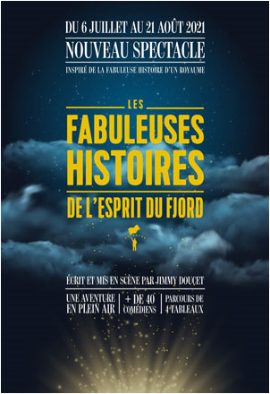 Du 6 juillet au 21 août, les spectateurs pourront profiter d’une aventure à la fois intérieure et extérieure, créée sur mesure et basée sur quatre tableaux, mettant en lumière les saisons. La nouvelle production propose une immersion dans la vie des premières familles venues s’installer dans la région. Des décors fantastiques, un parcours immersif où on y retrouve les grands classiques de La Fabuleuse tels que les chevaux, les voitures anciennes, l’Esprit du Fjord et une trame narrative historique, le tout écrit et mis en scène par Jimmy Doucet.