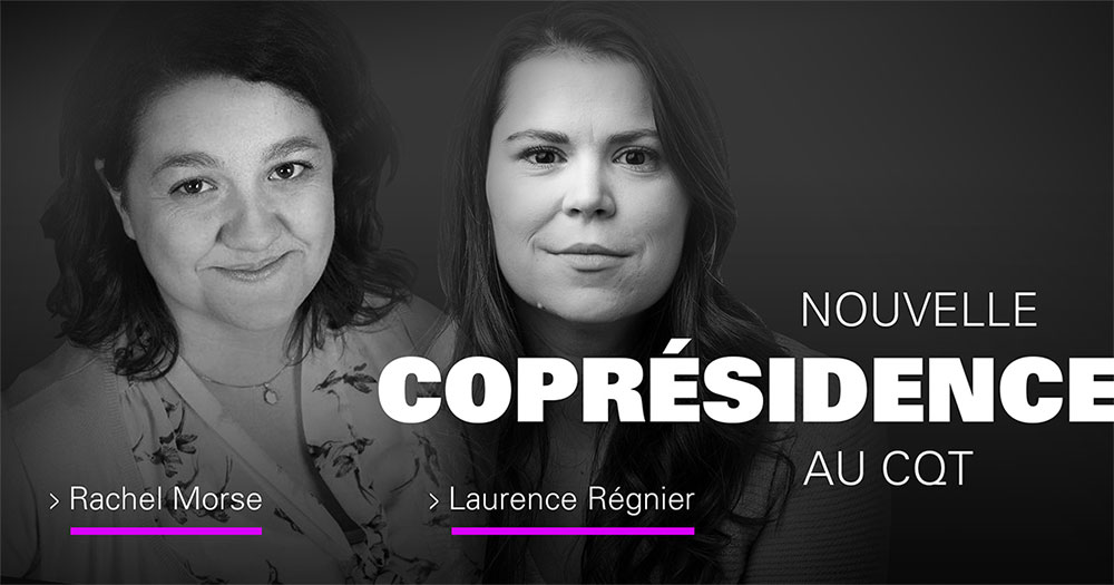 Lors d’une élection tenue lors de l’assemblée générale annuelle, les membres du CQT ont donné le mandat de la présidence à deux femmes, Laurence Régnier et Rachel Morse. Ces deux dernières remplacent ainsi la présidente sortante, Anne Trudel.